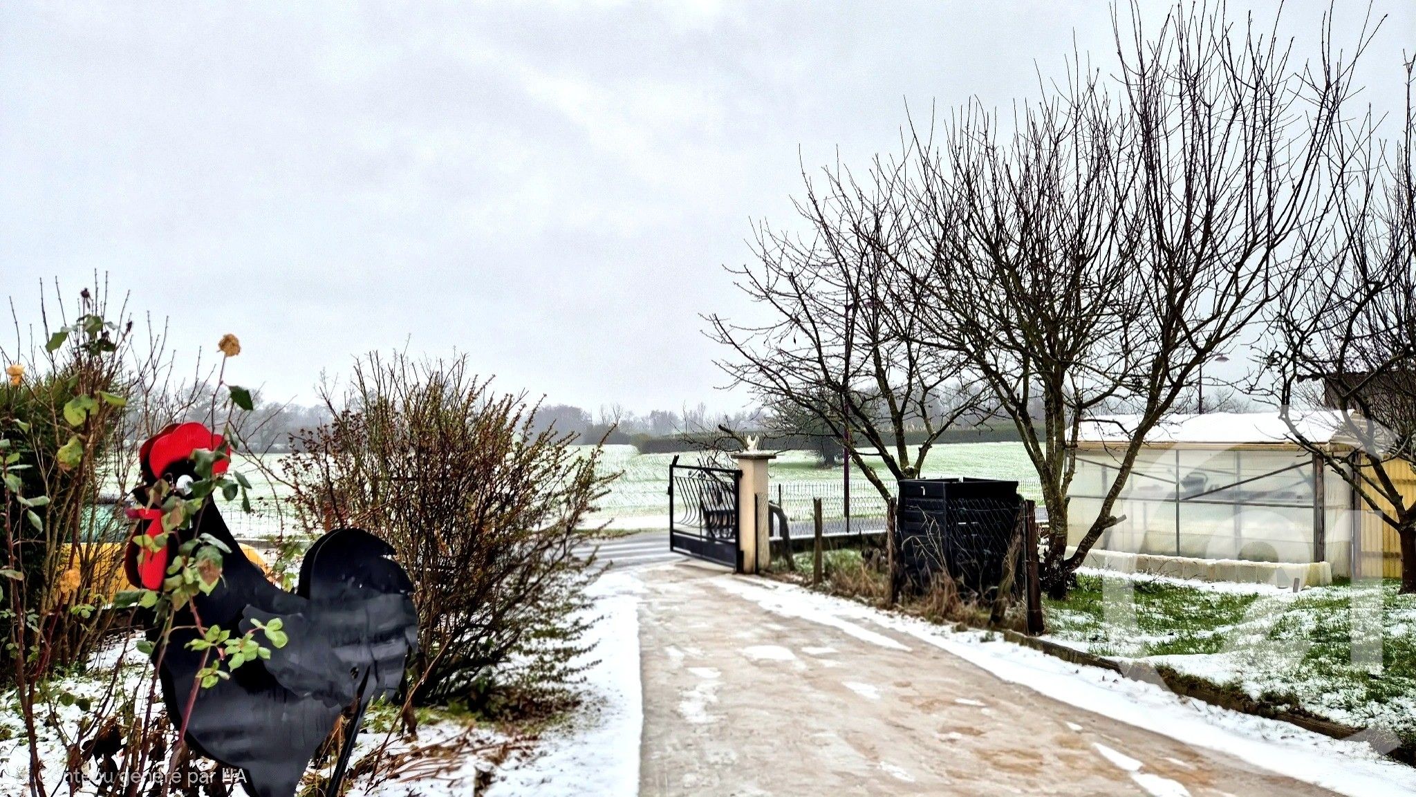 Ce beau terrain clôturé et arboré avec un puit se compose aussi d'un garage, d'un atelier et de pièce annexe.